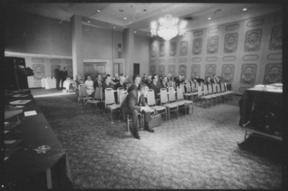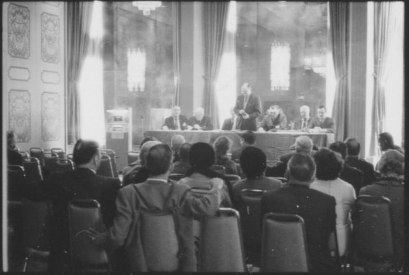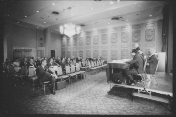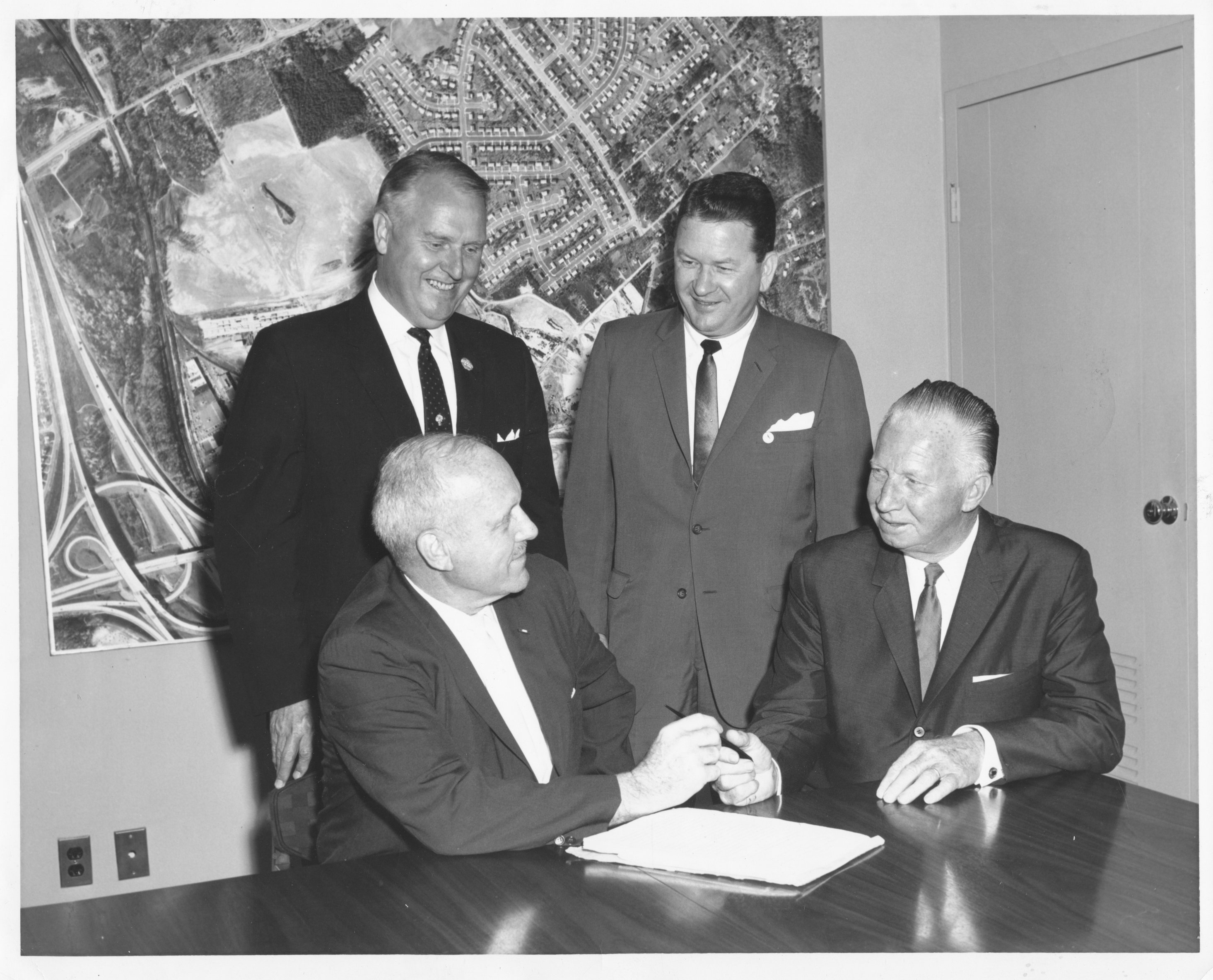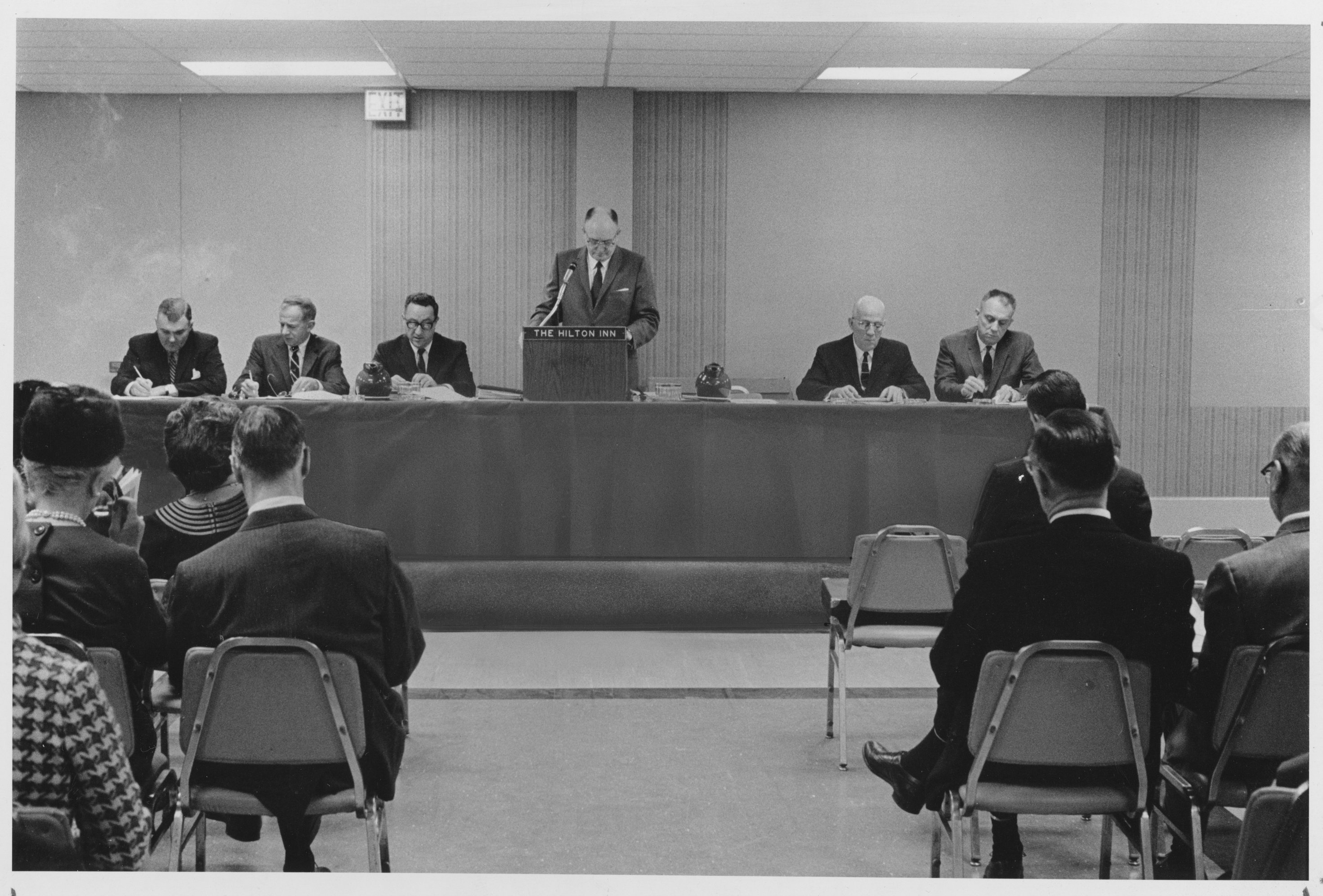 meeting shown at left. Al Moccia (?), Doug Carroll, Ted Jennings,
