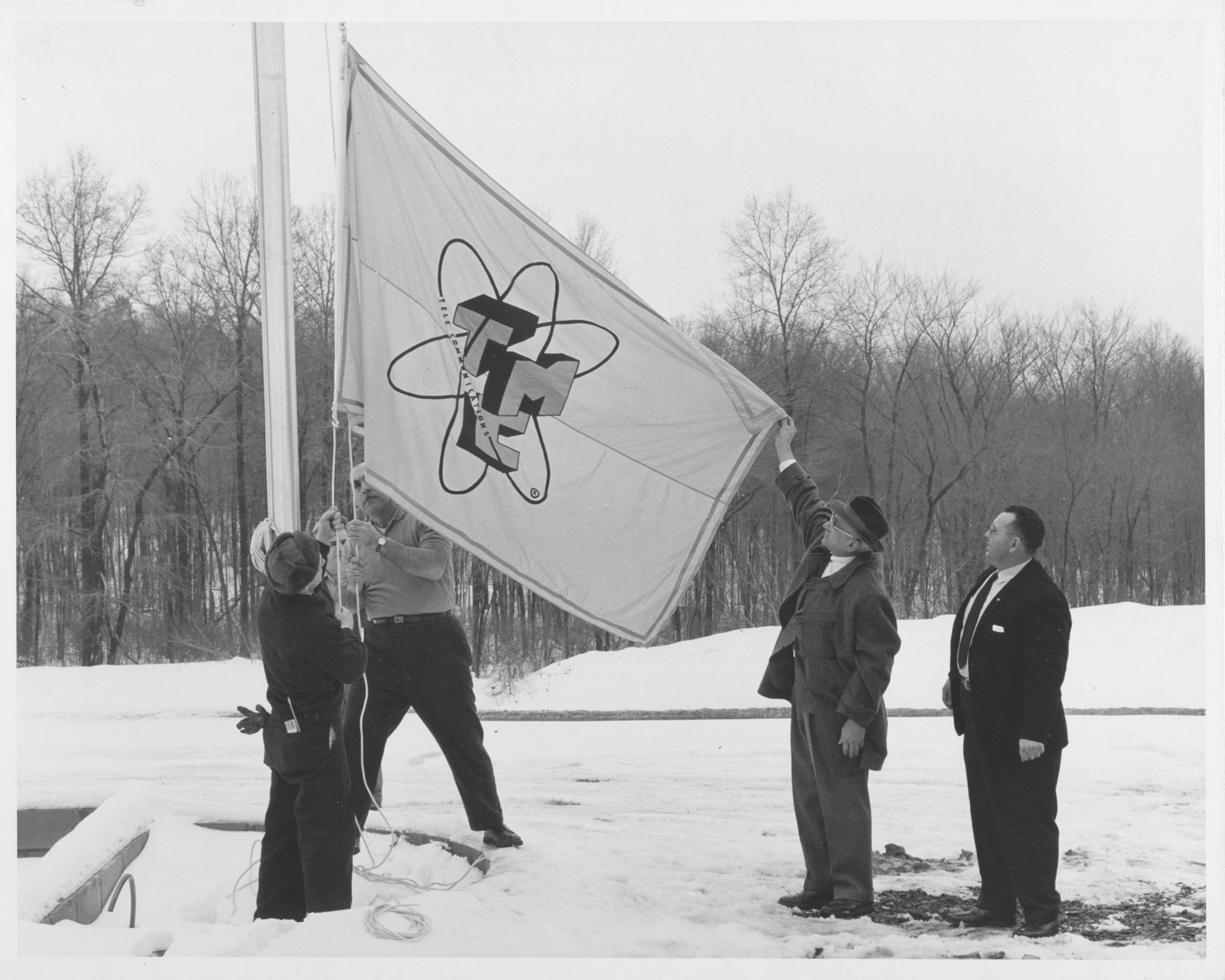 flag. Holding the end of the flag is Conrad Gebhardt, TMC Industrial